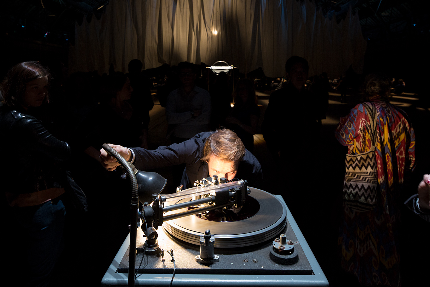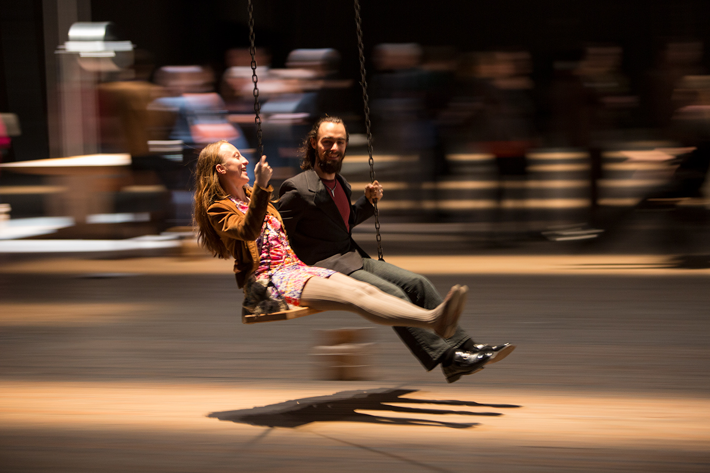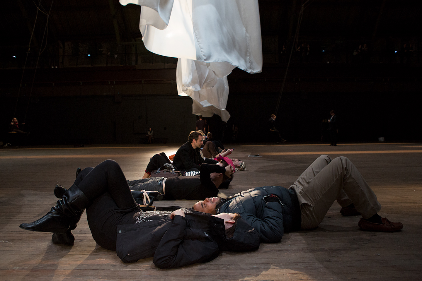 Visual artist Ann Hamilton combines the ephemeral presence of time with the material tactility for which she is best known to create a new large-scale installation for the Wade Thompson Drill Hall. Commissioned by the Armory, the event of a thread references the building’s architecture, as well as the individual encounters and congregational gatherings that have animated its rich social history. A multisensory affair, the work draws together readings, sound, and live events within a field of swings that together invite visitors to connect to the action of each other and the work itself, illuminating the experience of the singular and collective body, the relationship between the animal and the human. The address of the readers to the pigeons shifts at the end of each day, when a vocalist on the drill hall’s balcony serenades their release to flight. Each day’s song is cut with a record lathe, and the resulting recording is played back the next day.