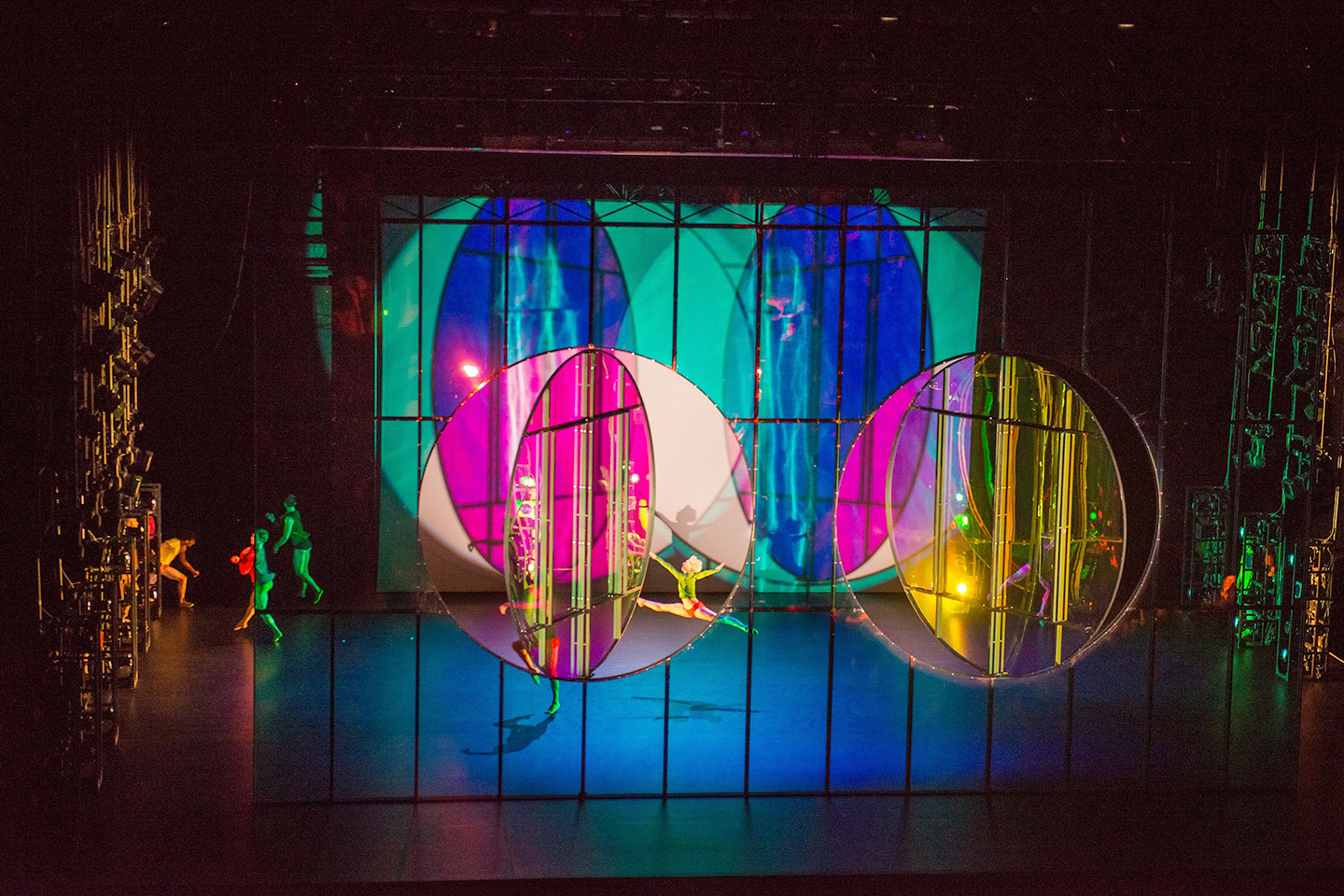 “Their performance swoops from euphoric to brooding, shifts in mood engineered through the music, movement, and light… they whirl around the stage with a Friday-night abandon as the light bounces between pinks, greens, and blues."